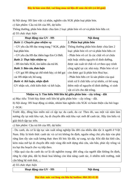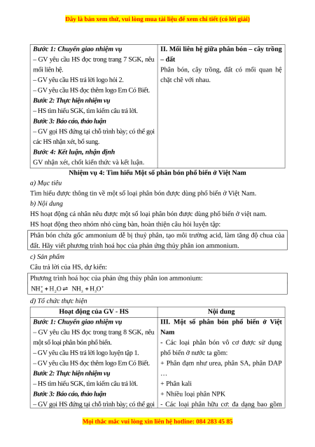 (8) Tự tìm hiểu và tự giải thích những ứng dụng của các loại phân bón khác. 3) Phẩm chất