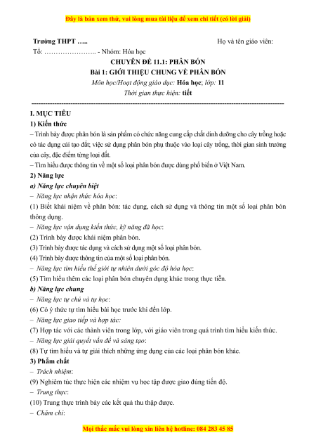 CHUYÊN ĐỀ 11.1: PHÂN BÓN