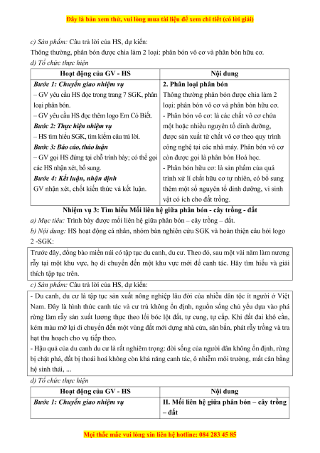 – GV yêu cầu HS đọc trong trang 7 SGK, phân Thông thường phân bón được chia làm 2 loại phân bón.