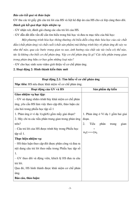 Hoạt động 2.1: Tìm hiểu về cơ chế phản ứng