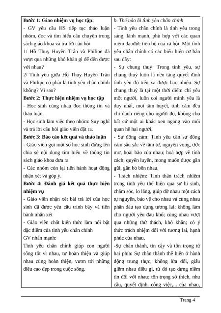 - GV yêu cầu HS tiếp tục thảo luận - Tình yêu chân chính là tình yêu trong