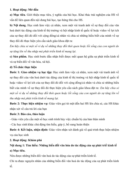 c) Sản phẩm. Nêu được những biến đổi văn hoá do tác động của sự phát triển kinh tế.