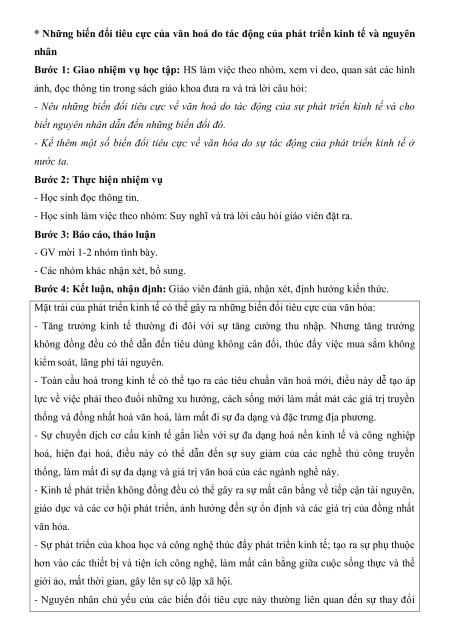 - Nêu những biến đổi tiêu cực về văn hoá do tác động của sự phát triển kinh tế và cho