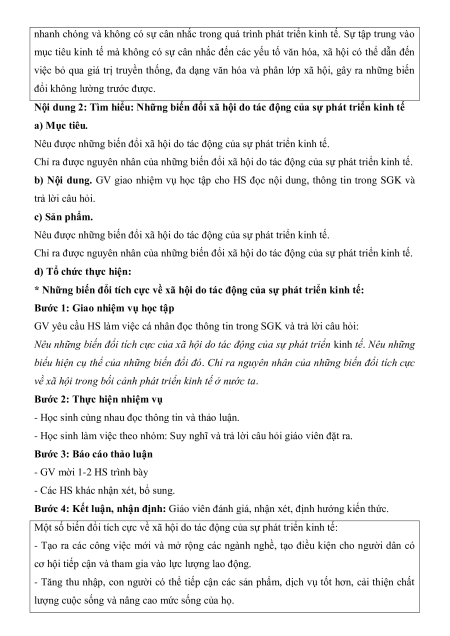 - Nêu được những biến đổi văn hoá, xã hội do tác động của sự phát triển kinh tế.