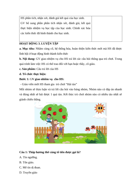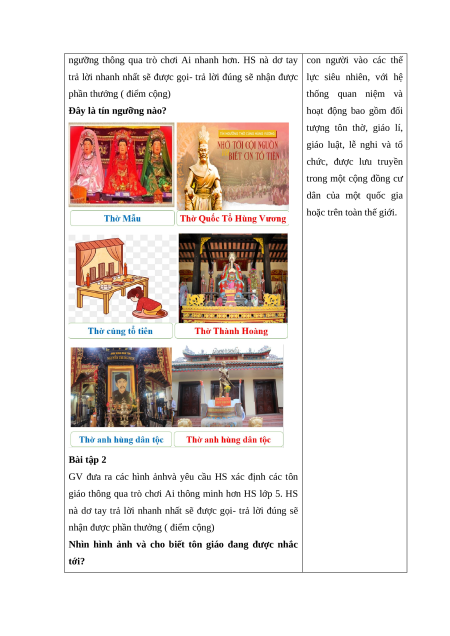 a. Mục tiêu: Giải thích được khái niệm tín ngưỡng, tôn giáo.