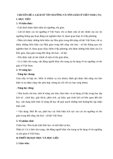 CHUYÊN ĐỀ 1: LỊCH SỬ TÍN NGƯỠNG VÀ TÔN GIÁO Ở VIỆT NAM ( T1) I. MỤC TIÊU 1. Về kiến thức: