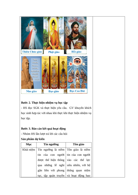 - Giải thích được khái niệm tín ngưỡng, tôn giáo.