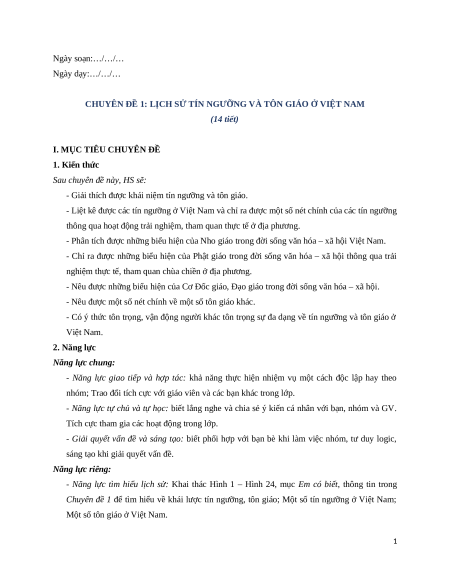 CHUYÊN ĐỀ 1: LỊCH SỬ TÍN NGƯỠNG VÀ TÔN GIÁO Ở VIỆT NAM (14 tiết)