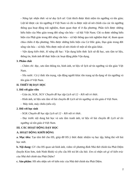 - Có ý thức tôn trọng, vận động người khác tôn trọng sự đa dạng về tín ngưỡng và tôn giáo ở Việt Nam. 2. Năng lực