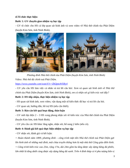 b. Nội dung: GV cho HS quan sát hình ảnh, video về phương đình Nhà thờ chính tòa Phát Diệm