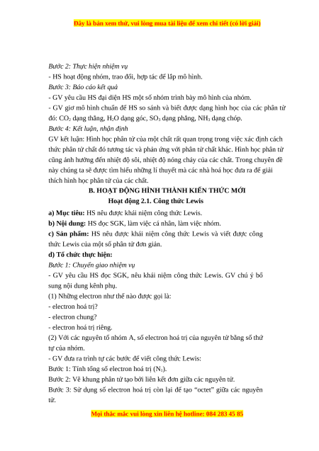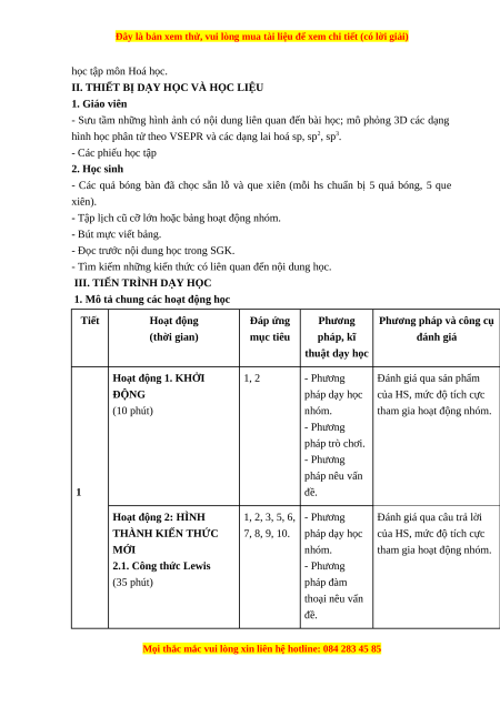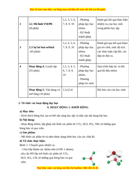 hoá trị riêng; mô hình VSEPR; thuyết lai hoá; ...); Hoạt động nhóm một cách hiệu quả