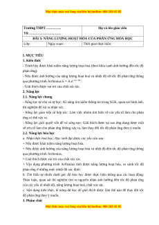 BÀI 3: NĂNG LƯỢNG HOẠT HÓA CỦA PHẢN ỨNG HÓA HỌC Lớp: Ngày soạn: Thời gian thực hiện: I. MỤC TIÊU 1. Kiến thức