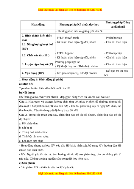 2.1. Năng lượng hoạt hoá (15’) - PPDH hợp tác - Phiếu học tập