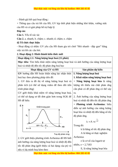 GV giới thiệu khái niệm về năng lượng hoạt hoá, ra.