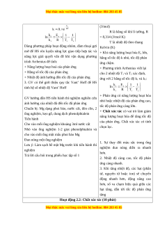 2. GV giới thiệu phương trình Arrhenius để HS biết Arrhenius