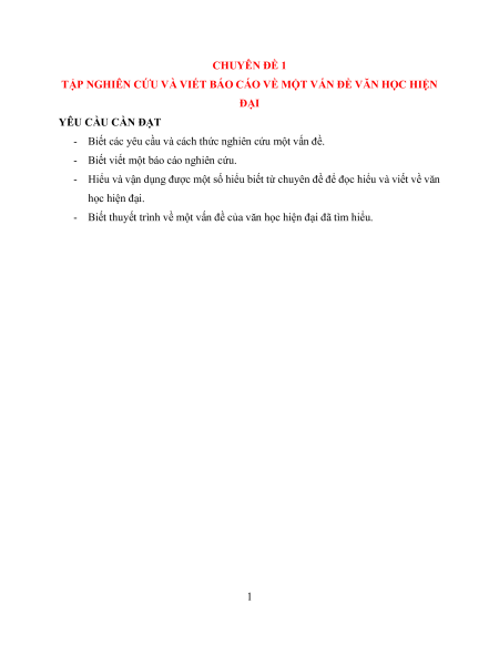 - Biết thuyết trình về một vấn đề của văn học hiện đại đã tìm hiểu. 1