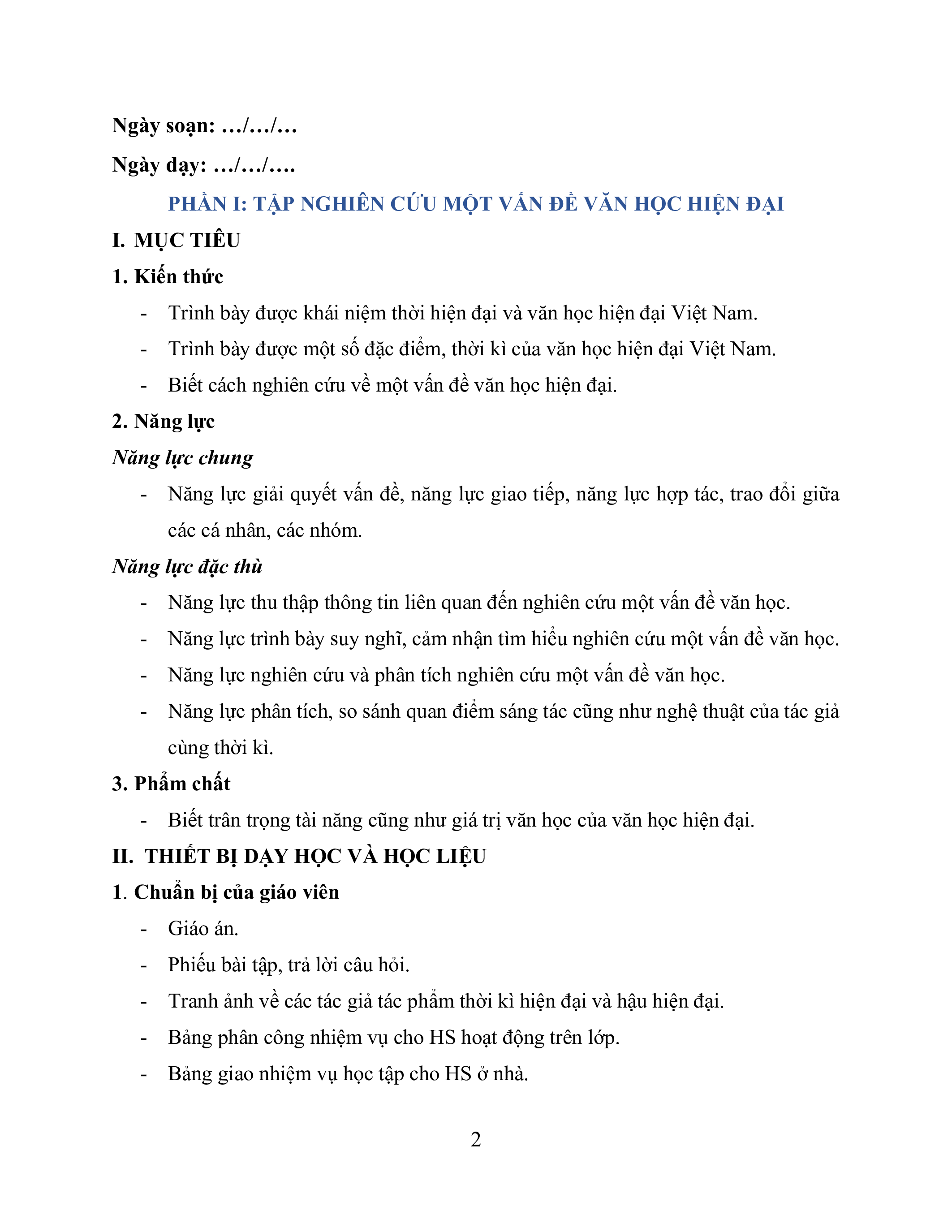 - Biết cách nghiên cứu về một vấn đề văn học hiện đại. 2. Năng lực
