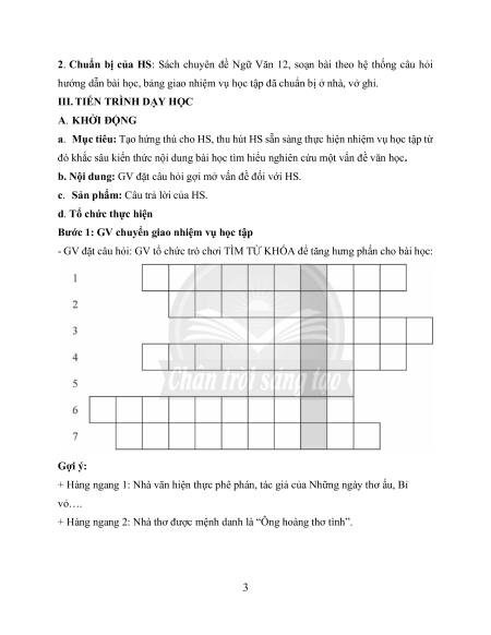 2. Chuẩn bị của HS: Sách chuyên đề Ngữ Văn 12, soạn bài theo hệ thống câu hỏi