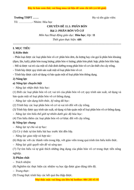 CHUYÊN ĐỀ 11.1: PHÂN BÓN