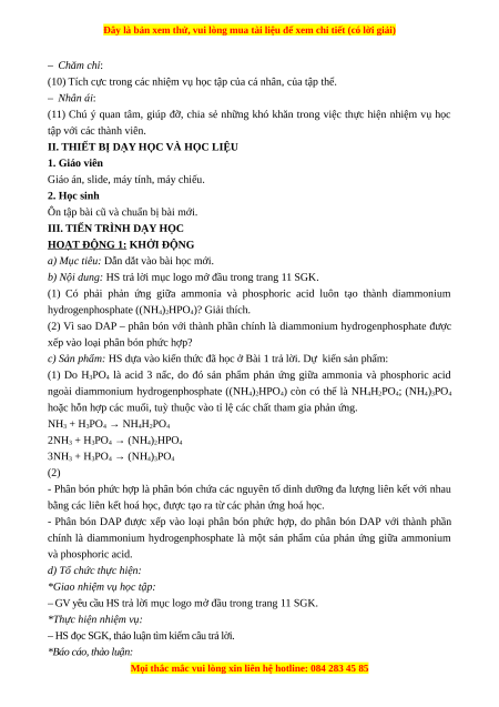 (7) Tự tìm hiểu và tự giải thích những ứng dụng của phân bón vô cơ trong thực tiễn nông nghiệp. 3) Phẩm chất