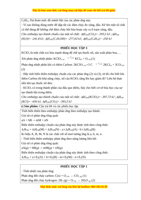 (H2O)= -241,8 kJ; fH298 (C2H5OH)= -277,63 kJ; fH298 (C8H18)= -250 kJ PHIẾU HỌC TẬP 3