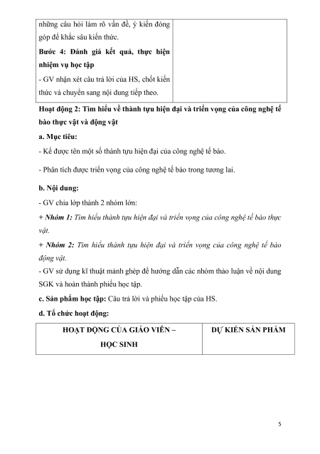 - Nêu được các nguyên lí sinh học làm cơ sở cho sự phát triển công nghệ tế bào. b. Nội dung: