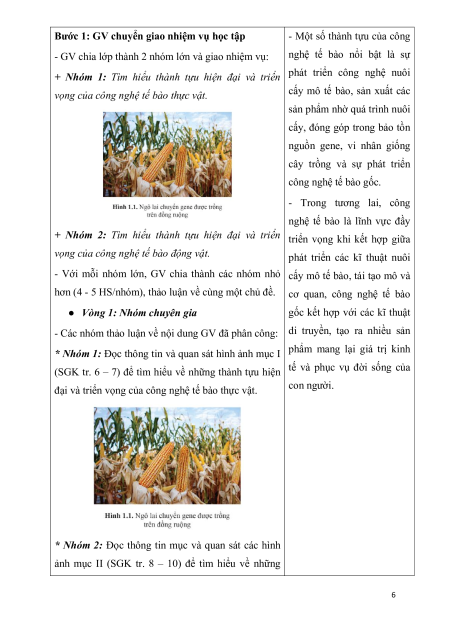 Bước 1: GV chuyển giao nhiệm vụ học Công nghệ tế bào là một lĩnh vực tập