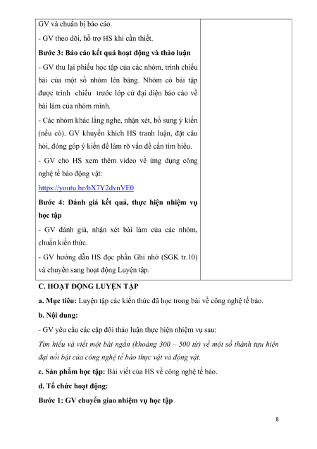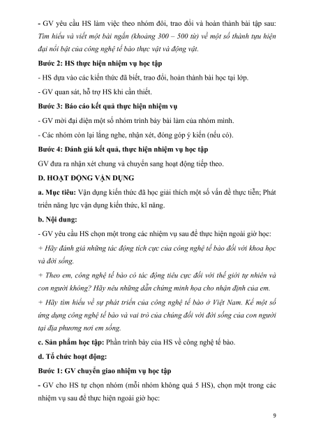dụng công nghệ tế bào từ các nội dung đã học. 3. Phẩm chất