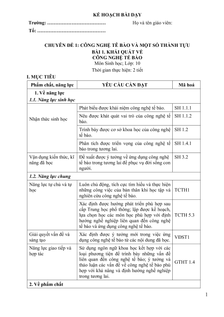tế bào trong tương lai để phục vụ đời sống con người. 1.2. Năng lực chung