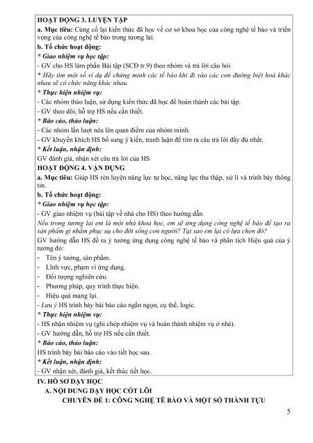 dụng công nghệ tế bào từ các nội dung đã học. VĐST1 Năng lực giao tiếp và