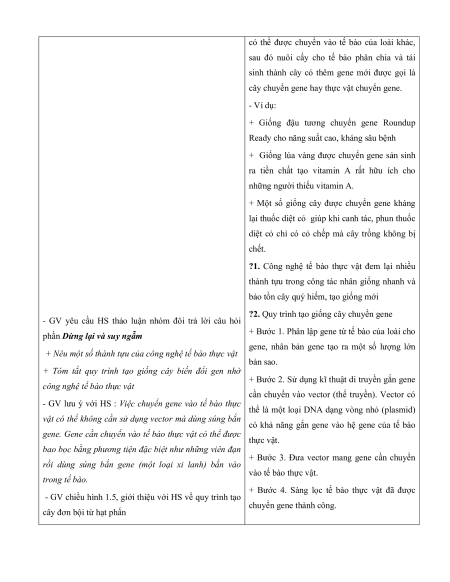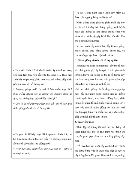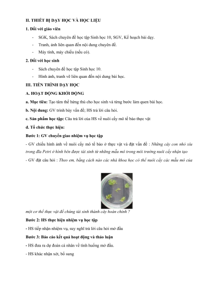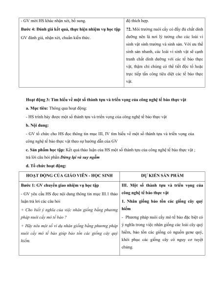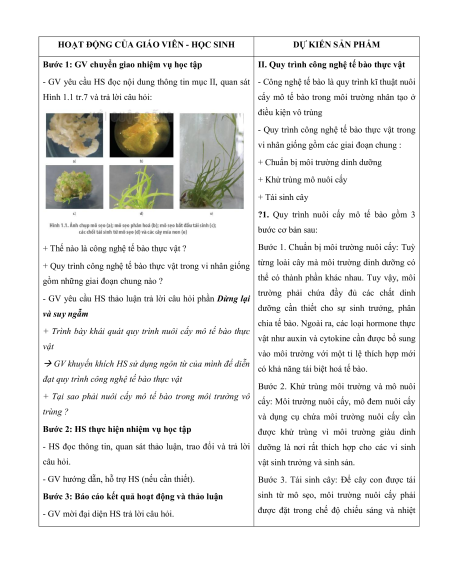 - HS trình bày được quy trình công nghệ tế bào thực vật b. Nội dung: