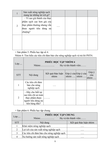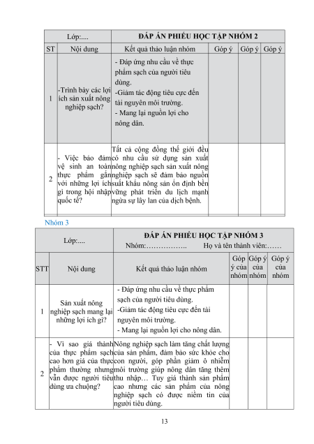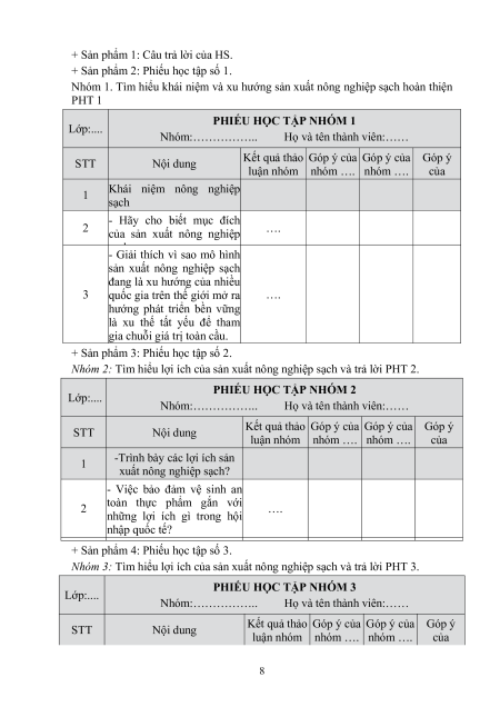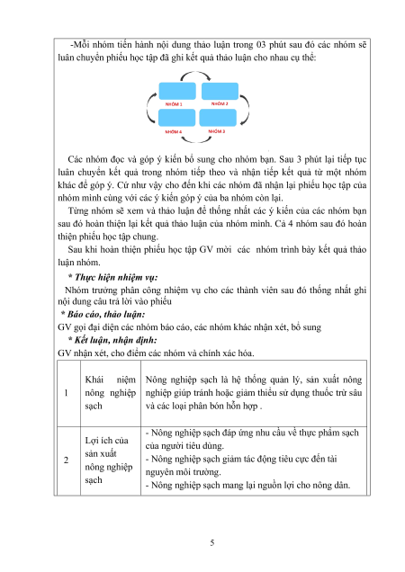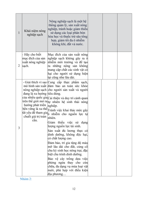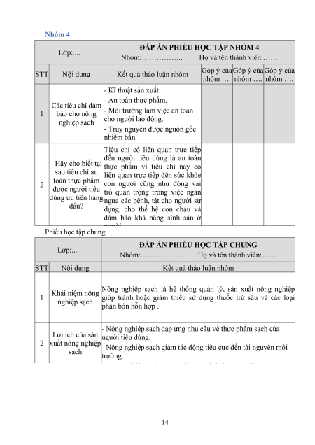 nghiệp sạch, mỗi nhóm thực hiện một nhiệm vụ độc lập thông qua việc hoàn thành phiếu học tập. *Vòng 2: 4