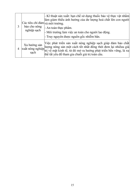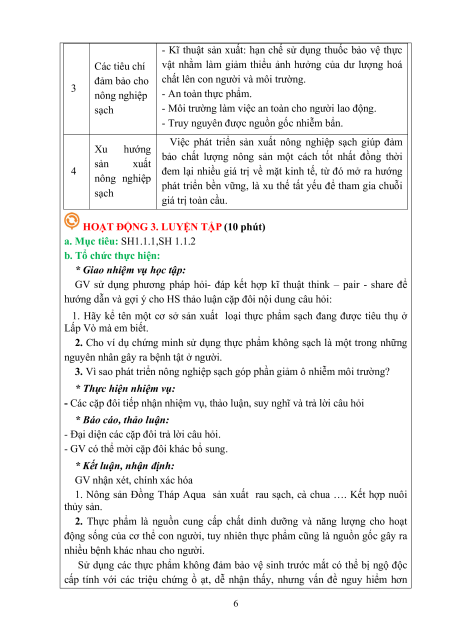 Nhận thức sinh học Trình bày được các tiêu chí đảm bảo cho nông nghiệp sạch. SH 1.2.1