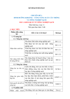 BÀI 1. KHÁI QUÁT VỀ NÔNG NGHIỆP SẠCH Môn Sinh học; Lớp: 11