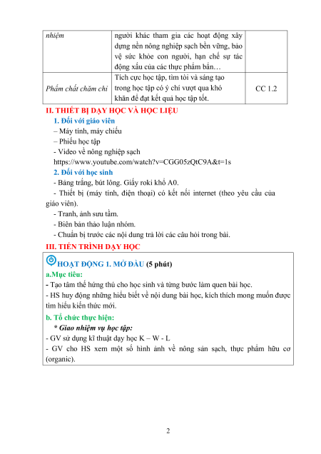 các kiến thức về nông nghiệp sạch. VĐST 3 2. Về phẩm chất