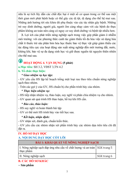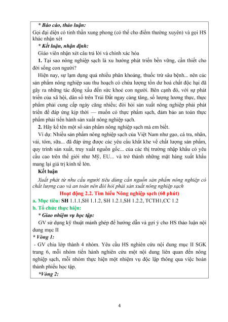 Hoạt động 2.2. Tìm hiểu Nông nghiệp sạch (60 phút)