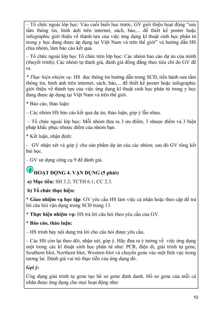 a) Mục tiêu: SH 1.1; TCTH 6.1; CC 2.3. b) Tổ chức thực hiện: