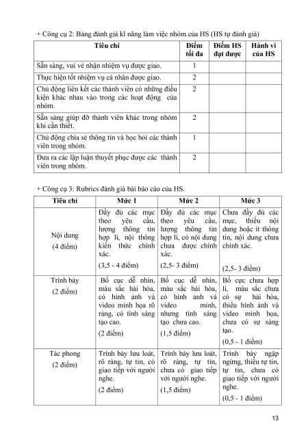 ‒ GV sử dụng công cụ 1 để đánh giá.
