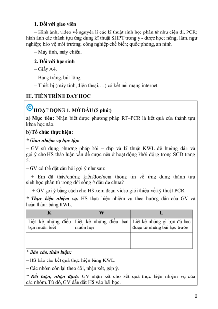 ‒ GV sử dụng phương pháp hỏi – đáp và kĩ thuật KWL để hướng dẫn và