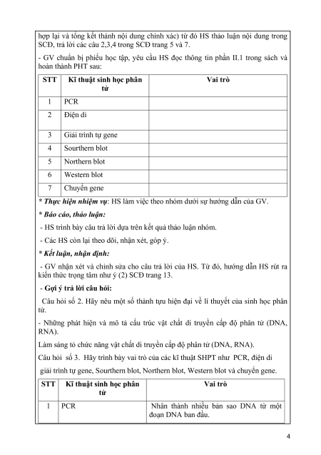 - GV sử dụng phương pháp hỏi – đáp để hỗ trợ HS hoàn thành PHT; kết hợp kĩ