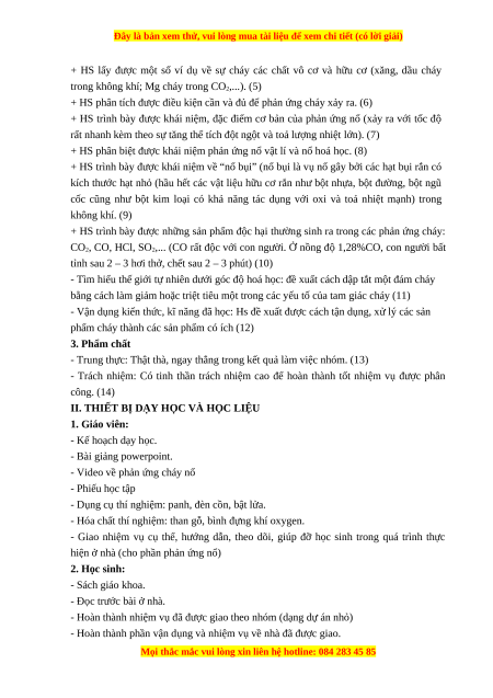 + HS phân tích được điều kiện cần và đủ để phản ứng cháy xảy ra. (6)