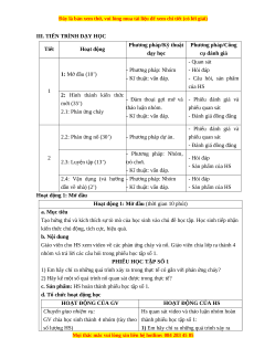Phương pháp/Kỹ thuật Phương pháp/Công Tiết Hoạt động dạy học cụ đánh giá - Quan sát - Phương pháp: Nhóm - Hỏi đáp 1: Mở đầu (10’) - Kĩ thuật: vấn đáp. - Câu hỏi, sản phẩm của HS 1