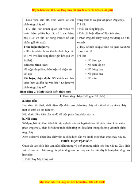 - Giáo viên cho HS xem video về các trong thực tế có gắn với phản ứng cháy. phản ứng cháy nổ Trả lời: