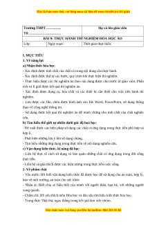 BÀI 9: THỰC HÀNH THÍ NGHIỆM HÓA HỌC ẢO Lớp: Ngày soạn: Thời gian thực hiện: I. MỤC TIÊU 1. Về năng lực