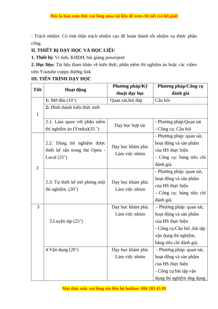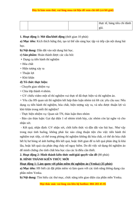 Giáo án chuyên đề Thực hành thí nghiệm hóa học ảo Hóa 10 Cánh diều