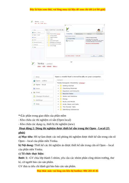 b) Nội dung: Thiết kế các thí nghiệm ảo được thiết kế sẵn trong cửa sổ Open – local