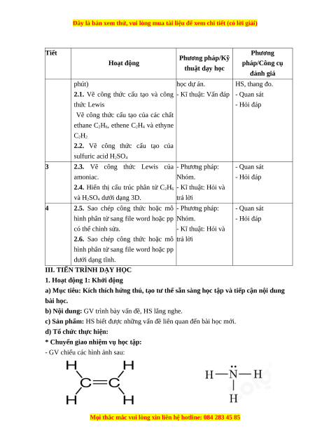 Hoạt động 2.1 và 2.2: Vẽ công thức cấu tạo và công thức Lewis của chất (20 phút) a) Mục tiêu:
