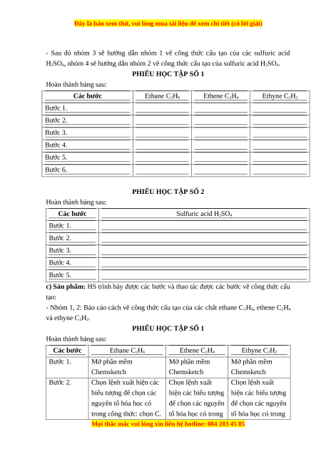 PHIẾU HỌC TẬP SỐ 1 Hoàn thành bảng sau: Các bước Ethane C2H6 Ethene C2H4 Ethyne C2H2 Bước 1. Bước 2. Bước 3. Bước 4. Bước 5. Bước 6.
