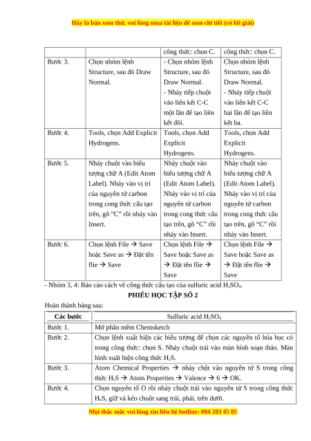 - Nhóm 3, 4: Báo cáo cách vẽ công thức cấu tạo của sulfuric acid H