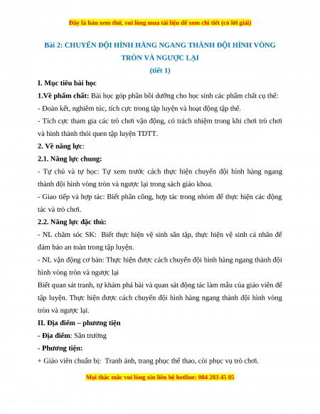 Giáo án Chuyển đội hình hàng dọc thành đội hình vòng tròn và ngược lại Giáo dục thể chất 2 Kết nối tri thức